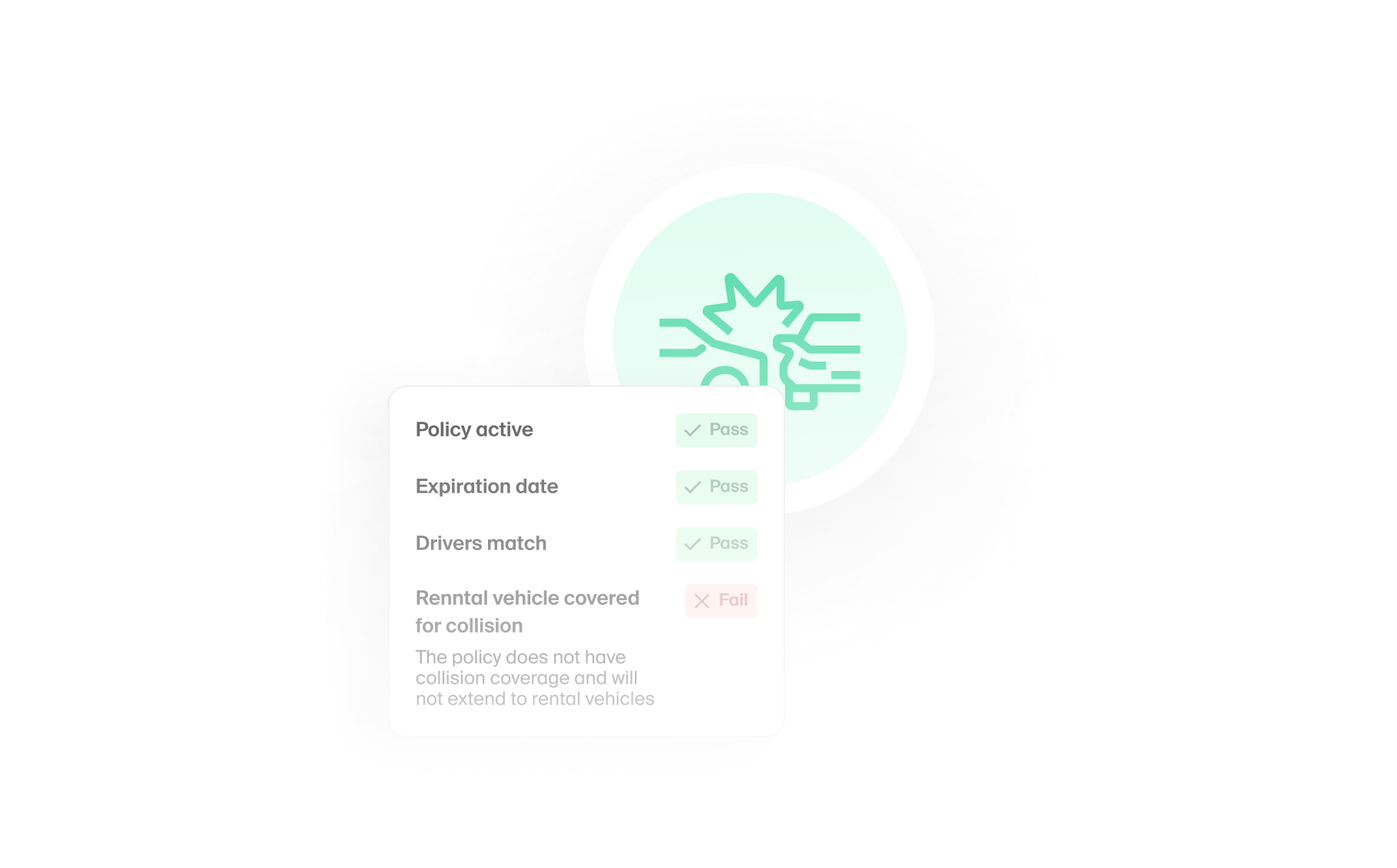 Reduce unrecovered losses. >35% of drivers are uninsured or missing full coverage. Axle's powerful verification and validation engine will help identify renters who are not properly covered.